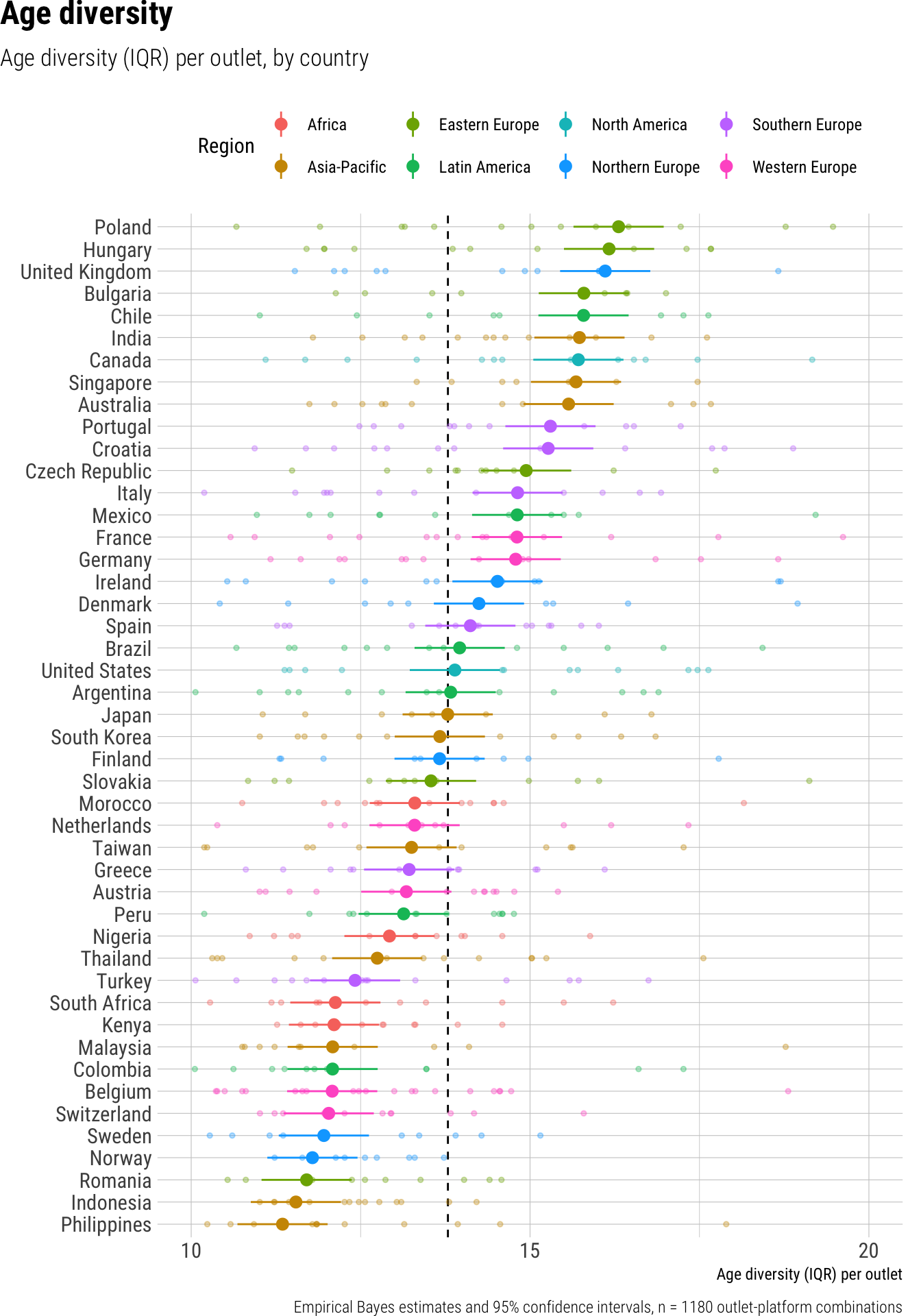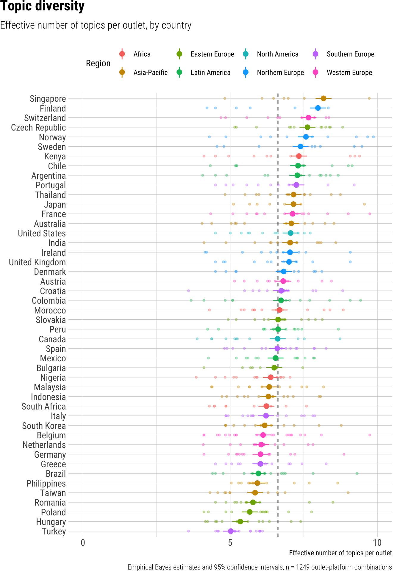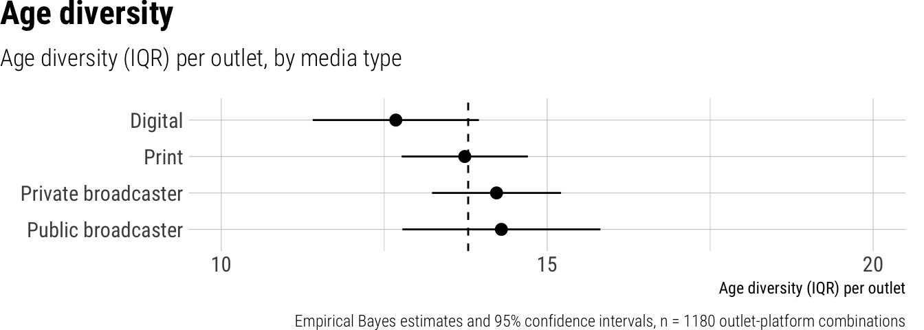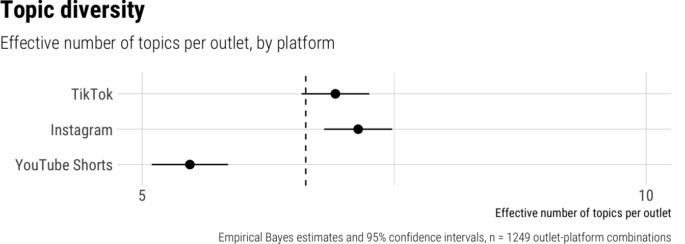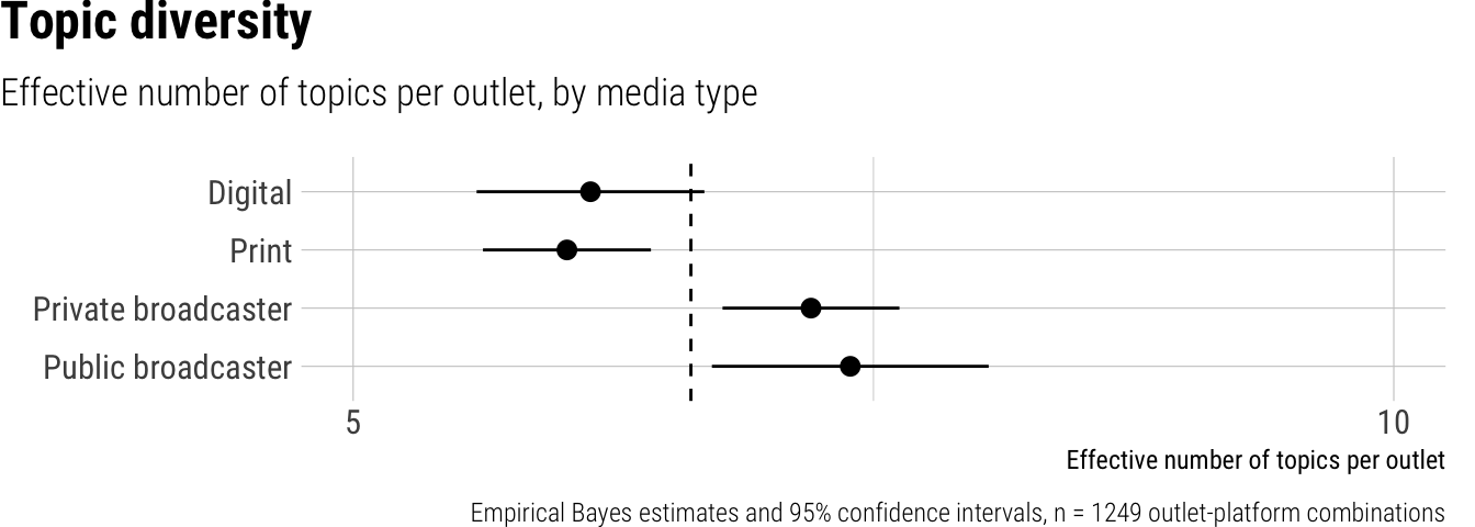 Topic diversity was estimated by computing the effective number of topics, which accounts for number of topics coded per outlet and their frequency distribution, see Laakso and Taagepera (1979) for a similar measure.